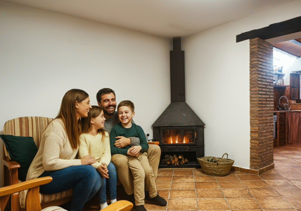 Imagina una velada entre amigos o en familia, el crepitar del fuego, una copa de vino y la calma del campo…